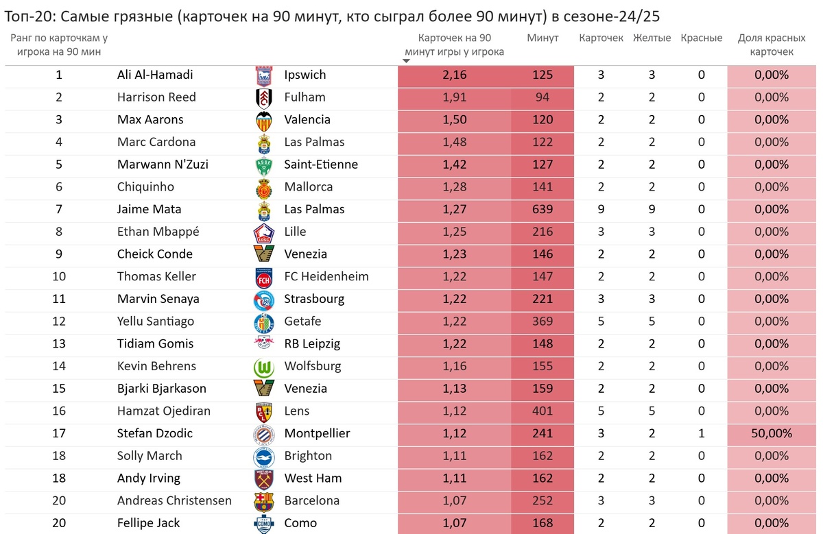 Анализируя полный список фолящих игроков (где есть как защитники, так и полузащитники, и даже несколько нападающих), можно сделать несколько выводов: